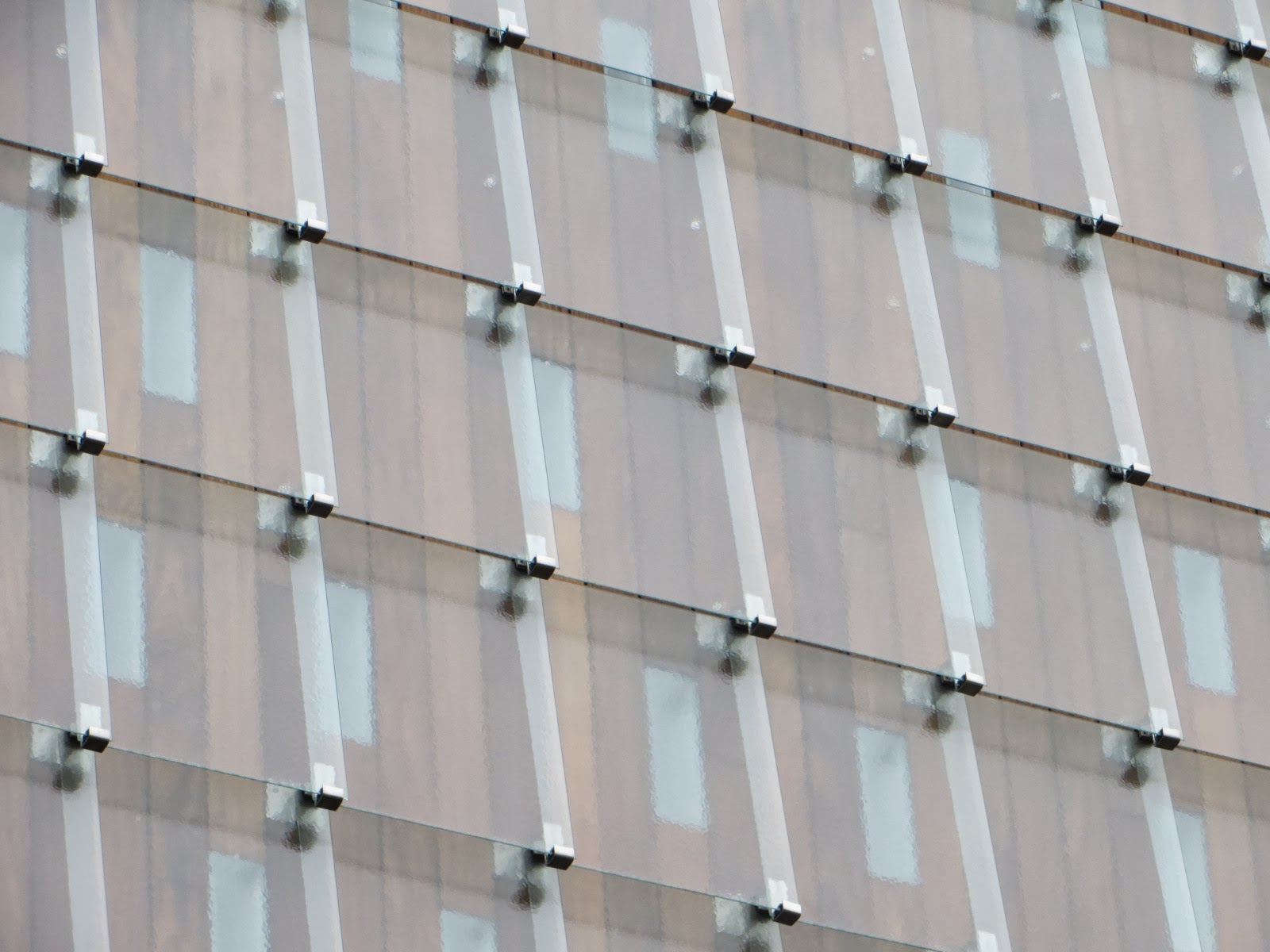 Overlapping glass shingles wrap the roof in an elegant deconstruction of traditional building techniques. Chinks of light are admitted into the hall through the tiny openings in the timber superstructure, evoking the quality of a ruined building. Constantly shifting in appearance, the glass shingles give the Market Hall a quicksilver character, responsive to the Northern European light and climate.